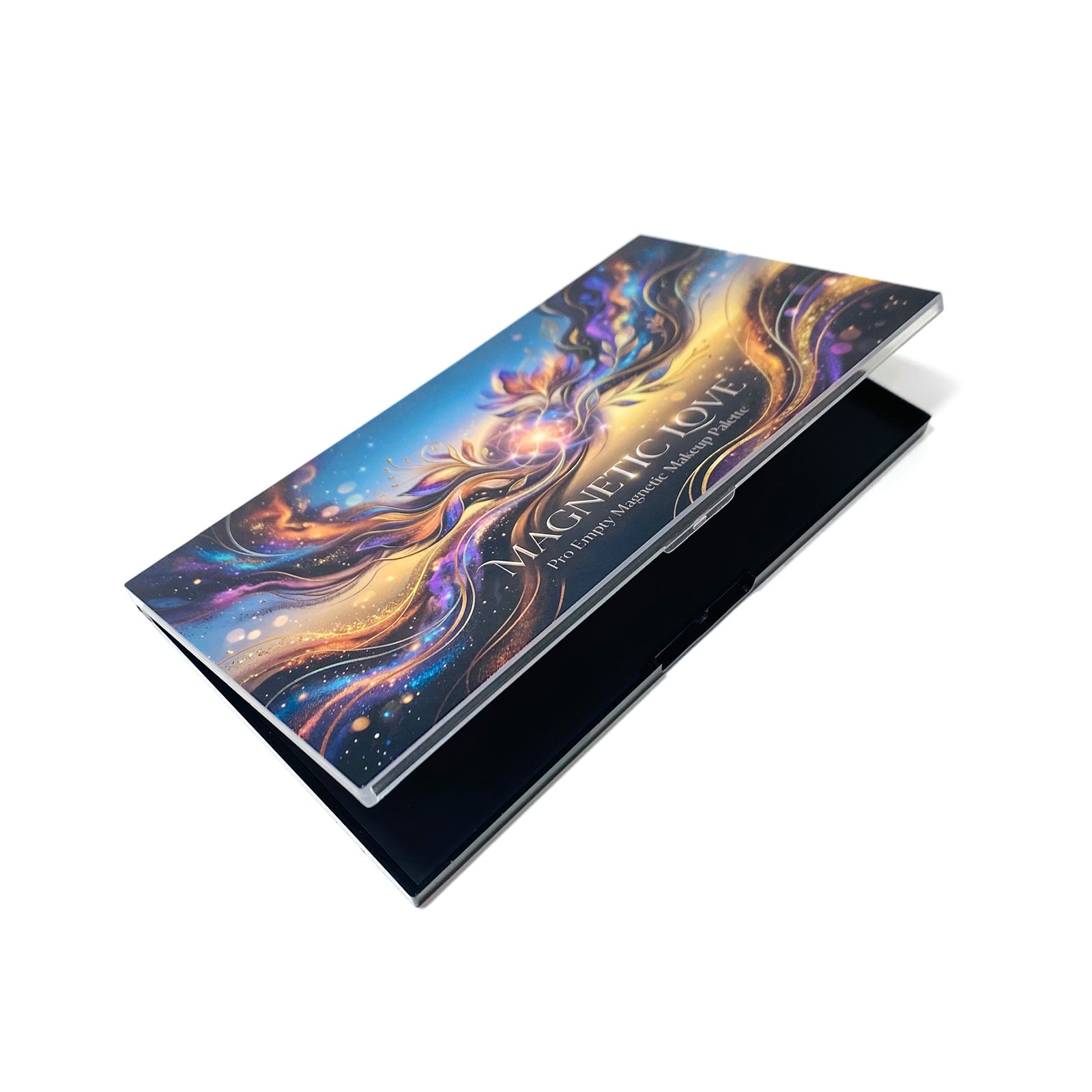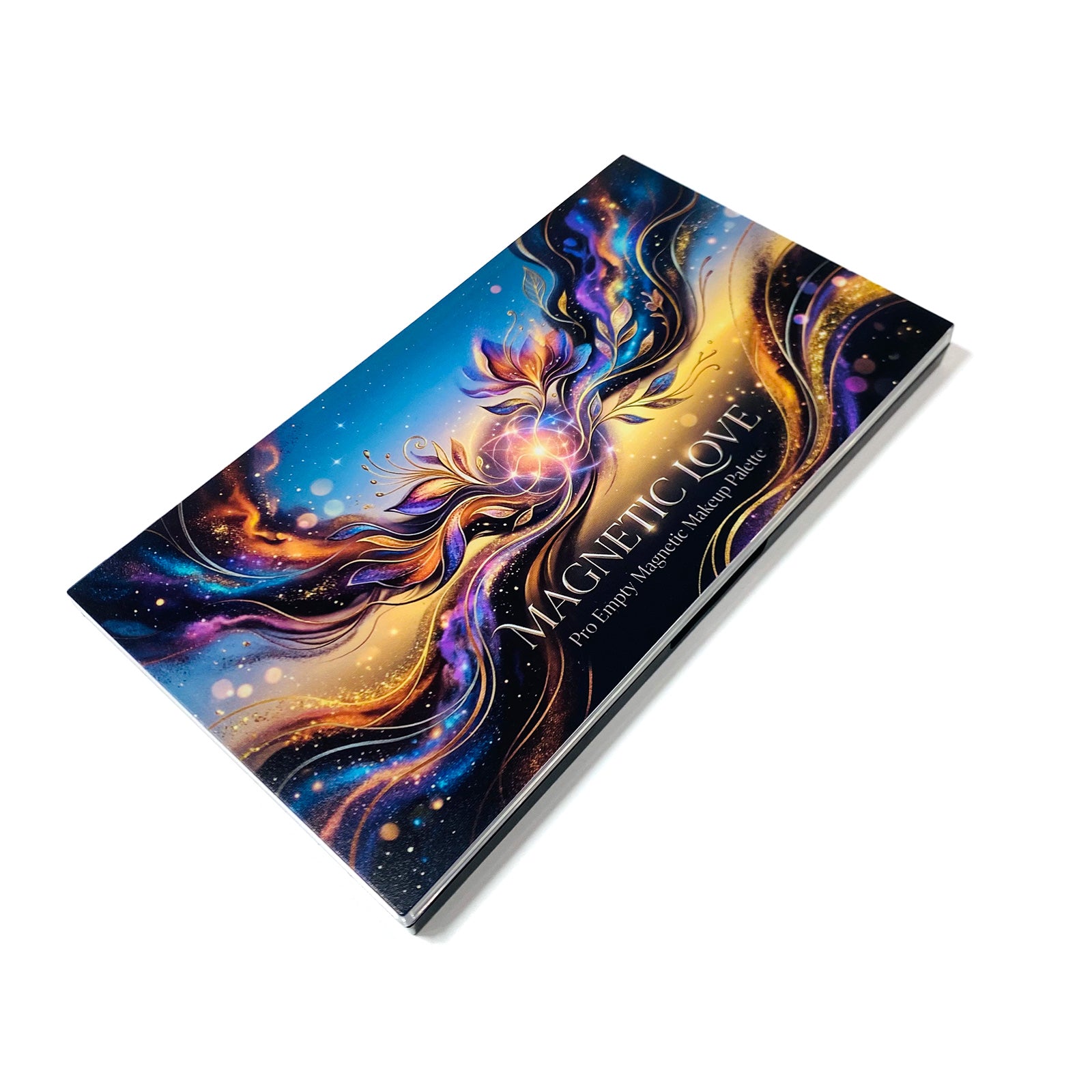 Ditch the boring black boxes. Featuring a mesmerizing cosmic floral artwork, this empty magnetic makeup palette is an aesthetic masterpiece that inspires your daily makeup routine and looks stunning on any vanity.