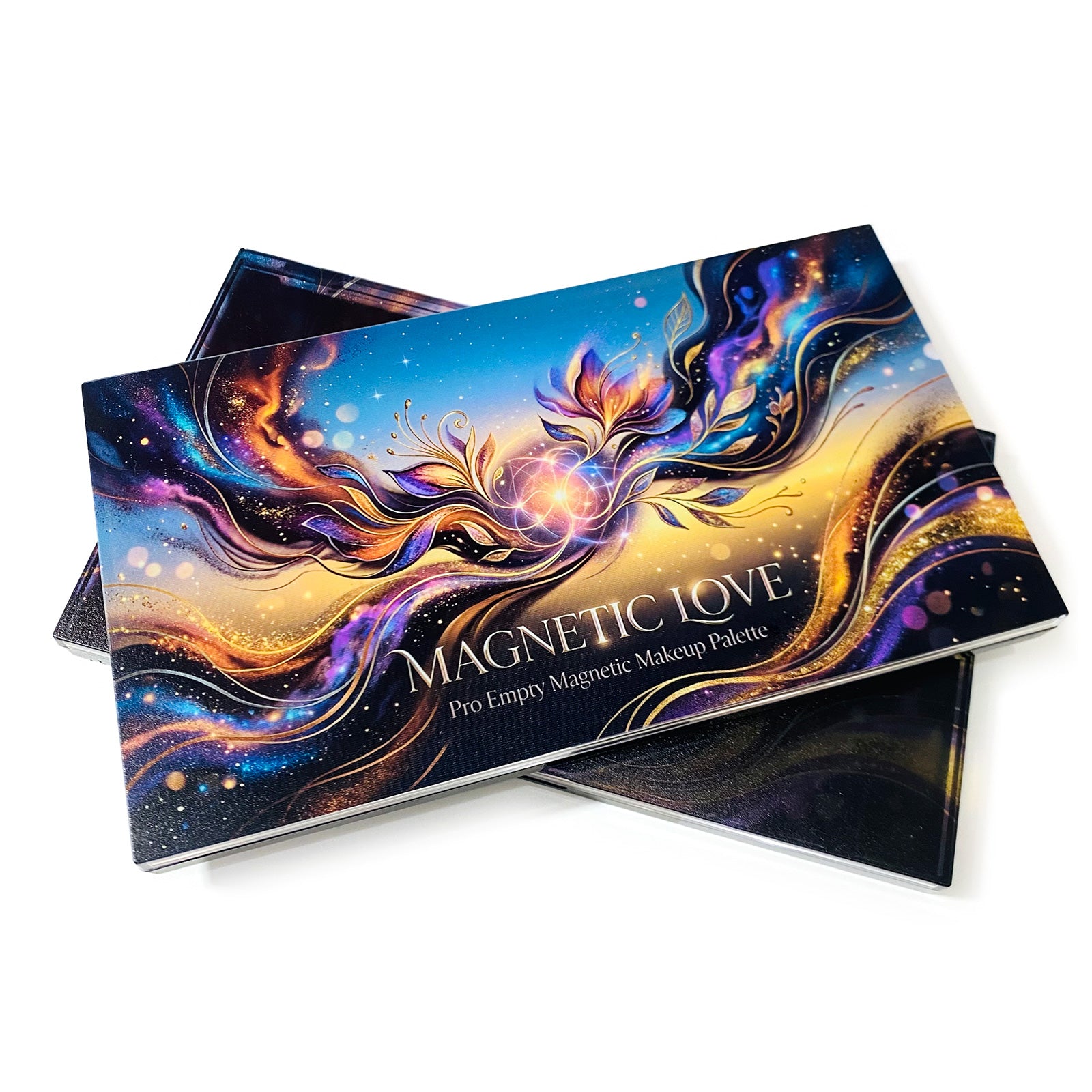 Why Choose the "Magnetic Love" Palette? Unlike standard organizers, we believe your makeup storage should be as beautiful as the looks you create. The stunning starry floral design makes it a standout piece. Inside, the strong magnetic base allows you to seamlessly arrange up to 21 standard 26mm eyeshadow pans, blushes, or highlighters.